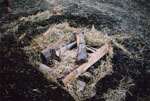 Gefäße beschädigten. Schließlich wurde die Grube mit weiteren Scheiten kegelförmig aufgefüllt und die Ritzen mit Stroh ausgestopft. Um den Grubenrand wurden Teile des Aushubs angeschüttet. Der Meiler brannte