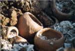 glühend heißen Gefäße nahezu frei auf der Grubensohle; vom Brennmaterial blieben lediglich wenige Hände voll feine, weißgraue Asche übrig. Der überwiegende Teil der Keramik (ca. 80%) wies weder Abplatzungen noch